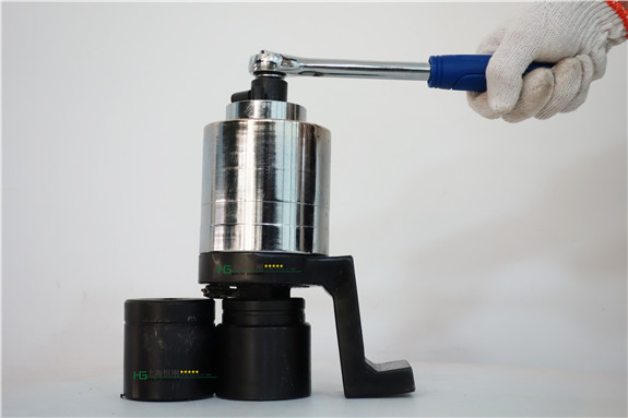 2、將控制儀的扭矩旋鈕調(diào)到所需扭矩值,將主機(jī)正反開關(guān)撥到正轉(zhuǎn)位置,把扳手套筒套在螺紋連接件的六方上。
